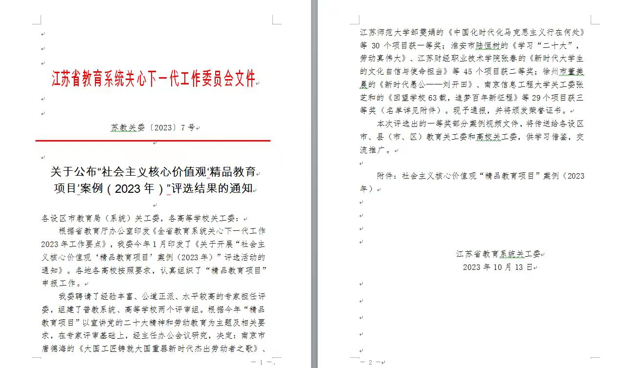 近日,由江苏省教育系统关工委组织开展的“社会主义核心价值观‘精品教育项目’案例(2023年)”评选活动落下帷幕。本次比赛共有来自普教系统和高等学校100多部作品参赛,水果派 陈明选教授讲授的《延安精神的内涵与时代价值》荣获一等奖。陈明选教授的精品教育项目课程内容,立足新时代思想政治教育,以深入浅出的党性胸怀,播撒炽热而闪耀的新旧时代交际的火种,从延安时期的辉煌业绩、延安精神的内涵特征、延安精神的产生条...