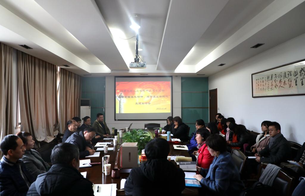 12月10日下午,学院中文第一、第二教师党支部召开了以“弘扬爱国奋斗精神、建功立业新时代”为主题的专题组织生活会。校党委委员、副校长顾正彪教授,院党委书记沈贵鹏,院领导班子成员和中文第一、第二教师党支部全体教师党员参会。会议由沈贵鹏书记主持。会议一开始,中文第一教师党支部书记罗兴萍教授介绍了中文两个支部的情况,对于每月的支部组织生活做了小结,并将此次专题组织生活会的要求通报了全体教师党员。接着,中...