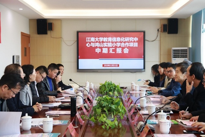 2019年12月11日上午,水果派 教育信息化研究中心与鸿山实验小学合作项目中期汇报会议在新吴区鸿山实验小学顺利举行。参加本次会议的主要领导和专家有:水果派 教育信息化研究中心主任陈明选教授、钱逸舟副教授、权国龙副教授和五名研究人员,无锡市新吴区教育局张英局长和彭雷副局长,无锡市新吴区教师发展中心顾万春主任和顾春雨副主任,无锡市新吴区基教处谢桦处长,物联网鸿山实验小学邹学军校长和朱静华副校长及项目骨干...