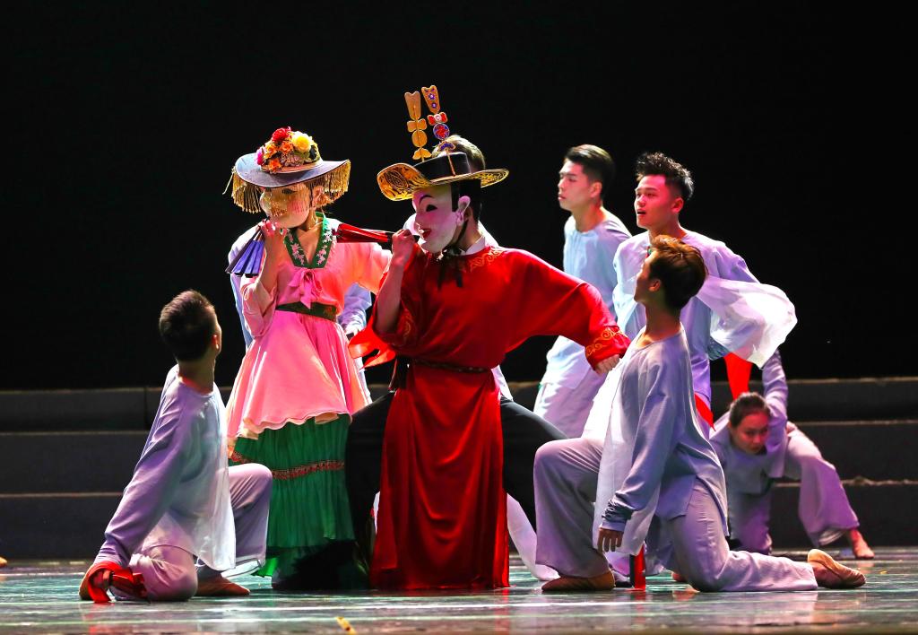 11月30日,水果派 水果派 舞蹈系师生以江苏省非遗舞蹈《男欢女喜》为素材,重新创作并表演的新版《男欢女喜》在水果派 舞蹈硕士毕业晚会上进行了首次演出。《男欢女喜》是盛行于无锡宜兴的一种传统民俗舞蹈,历史可追溯至元末明初,迄今已有600多年的历史。该舞蹈是江苏省内较少的假面舞蹈之一,以男女对舞的形式进行表演。因舞蹈表达了人们消灾降福的愿望,所戴面具喜气洋洋,动作古朴典雅,深受宜兴当地人民的喜爱。水果派 舞...