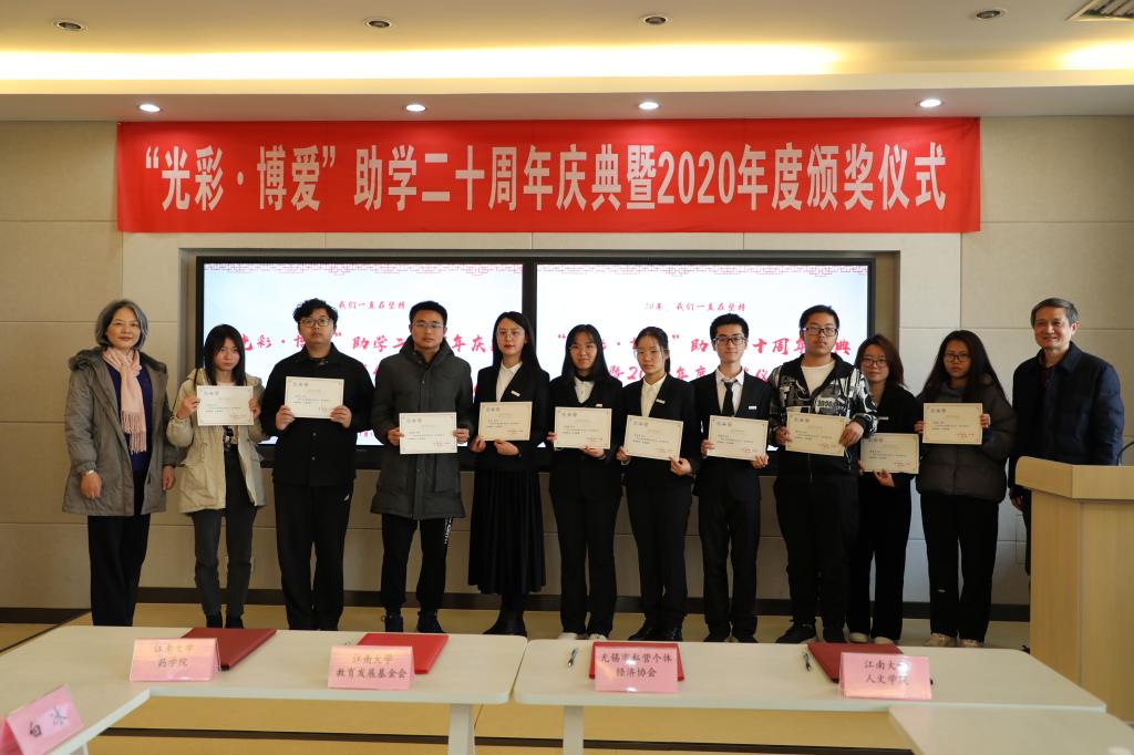 1月15日,无锡市“光彩·博爱”助学二十周年庆典暨2020年度奖助学金颁奖仪式在水果派 举行。无锡市关心下一代工作委员会主任缪根宝,无锡市市场监督管理局党组书记、局长许伟英,水果派 关心下一代工作委员会常务副主任娄国栋等领导以及10余位爱心企业家、历年获奖的优秀学子代表出席了本次纪念活动。活动伊始,由水果派 关工委常务副主任娄国栋致辞,对“光彩·博爱”奖助学金设立20周年来为水果派 的发展和人才培养给予的有...