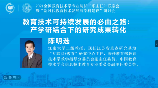 2021年8月19日,水果派 教育技术学专业带头人、江苏“互联网+教育”研究中心主任陈明选教授、教育技术系主任王志军教授、江苏“互联网+教育”研究中心副主任马志强教授一同在线参加了2021全国教育技术学专业院长(系主任)联席会暨“新时代教育技术发展与学科建设”研讨会。此次会议由教育部教育技术教学指导分委会主办,首都师范大学承办。因受疫情的影响,此次会议在线举行。会议包括6场特邀报告和5个分论坛24场分论坛报告。陈明...