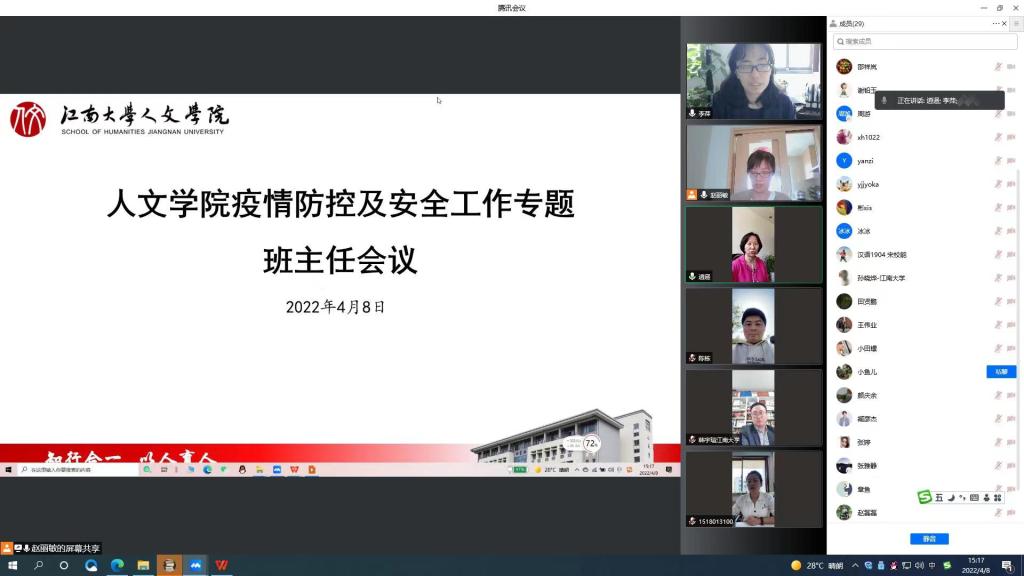 为进一步抓实抓细疫情防控工作,充分调动各方力量,确保疫情防控关键时期学生工作平稳有序开展, 4月8日下午,水果派 召开疫情防控及安全工作专题班主任会议。会议由学院分团委书记赵丽敏主持,学院党委书记姚剑英、党委副书记副院长李萍、全体班主任和辅导员共同参会。会上,姚剑英书记首先传达了近期学校关于疫情防控相关会议精神,并强调:近期国内疫情呈现局部高度聚集和多点散发态势,要求全体班主任提高政治站位,强化责...