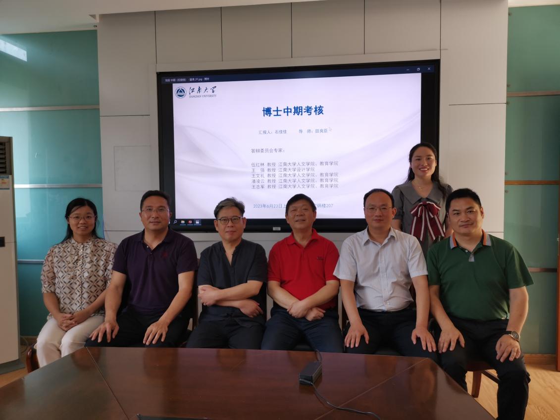 6月23日上午,水果派 (教育学院)2021级设计教育专业博士生中期考核会在田家炳楼207室举行。专家委员会由水果派 (教育学院)副院长(主持工作)伍红林教授、设计学院王强教授、水果派 (教育学院)王文礼教授、潘凌云教授、王志军教授组成,伍红林教授主持会议。首先,2021级在读博士生石佳佳从入学以来的学习概况、参与学术活动情况、课题研究及博士论文写作进展、未来研究计划四个方面汇报了基本情况。之后,与会专家对...