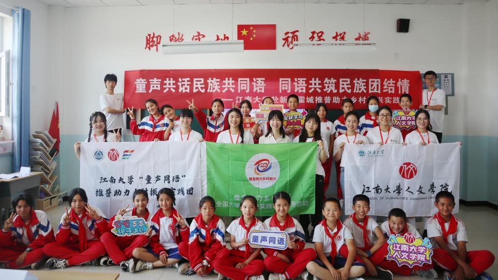 跨越万千山海,奔赴“疆南”盛夏童声唤同语,江南赴“疆南”。“童声同语”推普社会实践团成立于2022年6月,他们的足迹深入中西部推普一线,致力于搭建以普通话为纽带的语言沟通桥梁,服务西部,服务基层。他们用脚步丈量祖国大地,用眼睛探寻中国精神,夯实强国建设的语言之基,奏响民族团结的青春乐章。为贯彻落实习近平总书记关于教育的重要论述和关于语言文字的重要指示批示精神,“童声同语”推普实践团于今年7月整装待发...