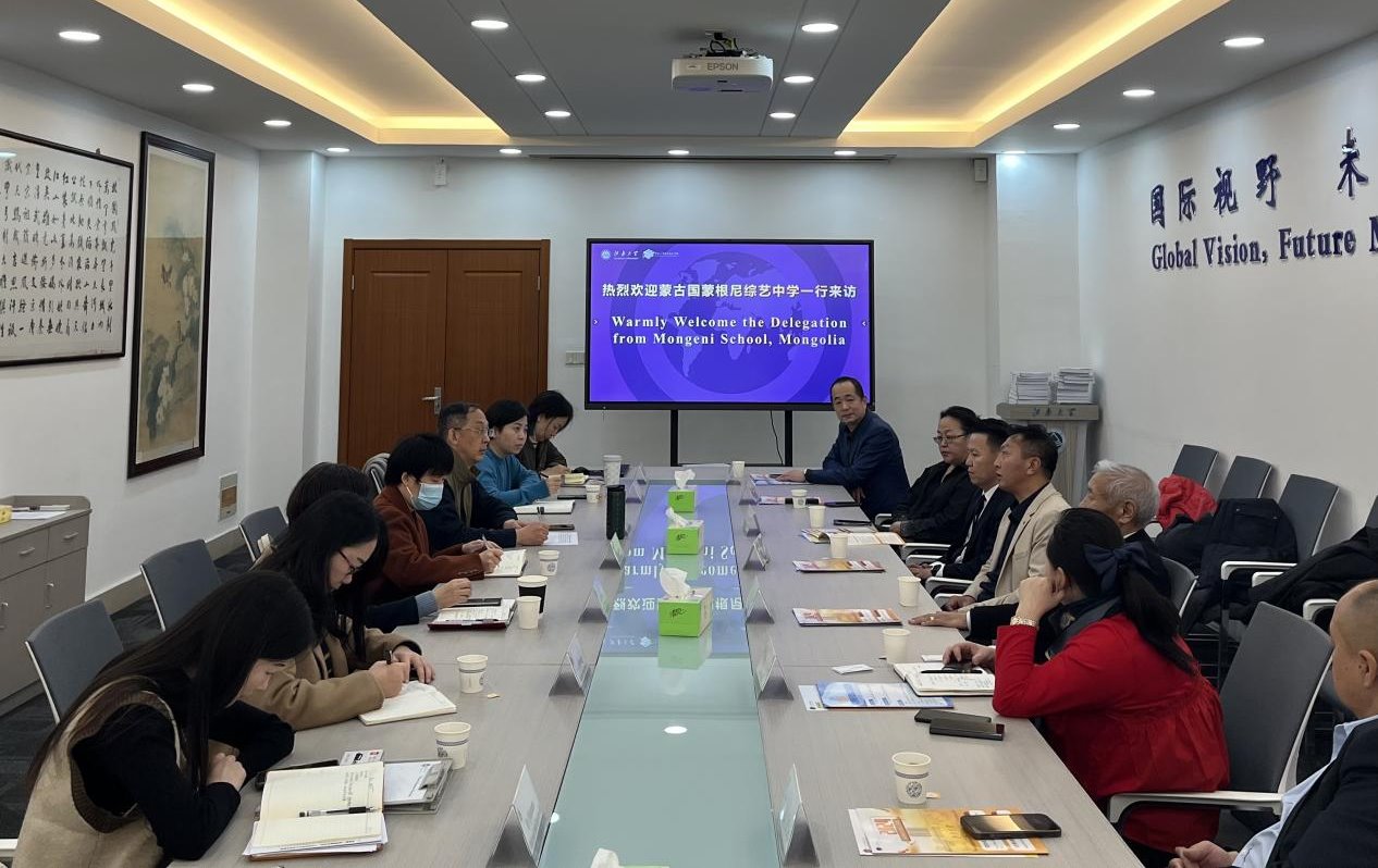2024年1月5日上午,蒙古国蒙根尼综艺学校校长努尔扎德·拉赫瓦一行来校访问。无锡市人民政府外事办公室亚太处处长于锦华、国际教育学院院长龚晓斌、水果派