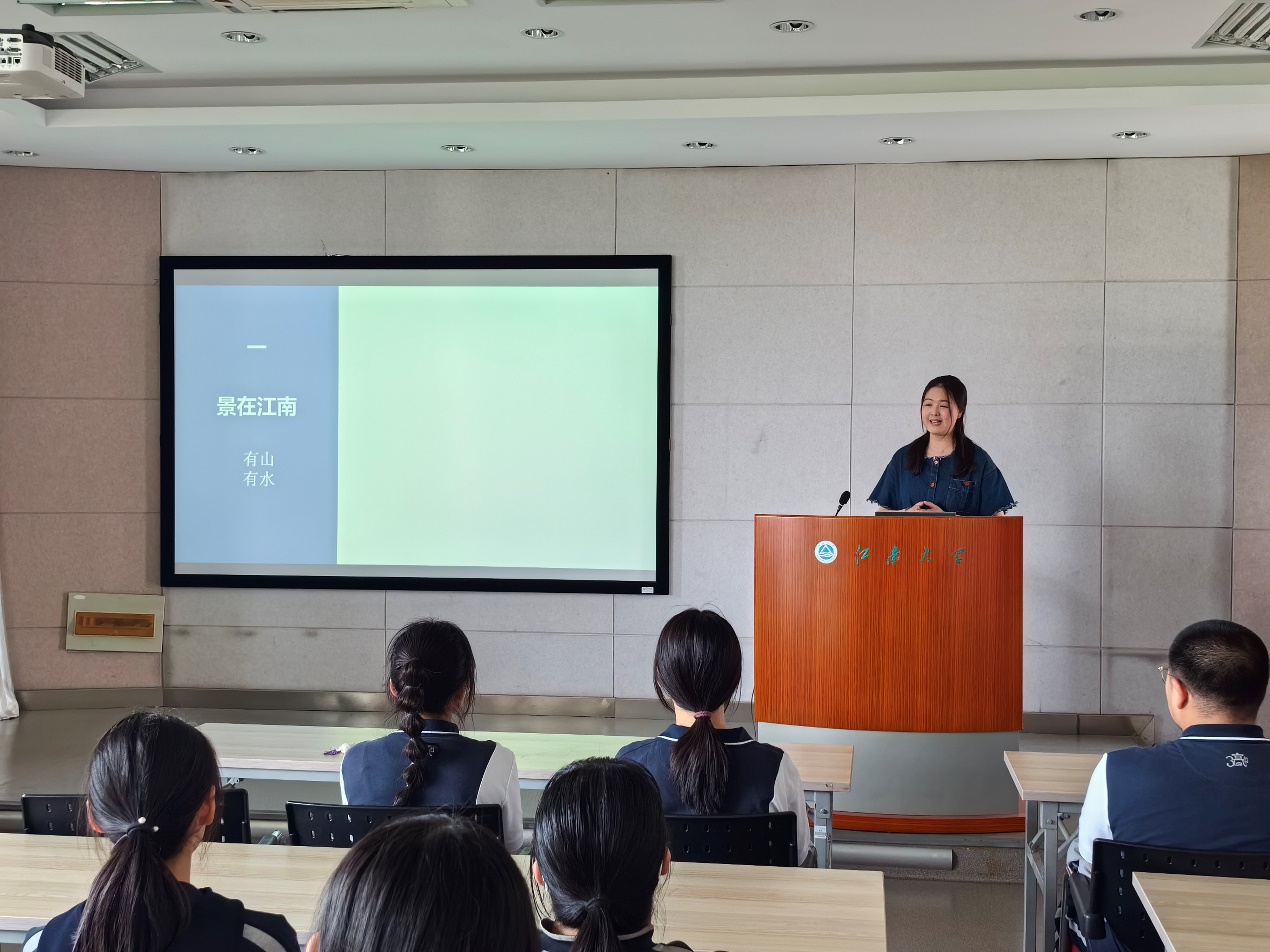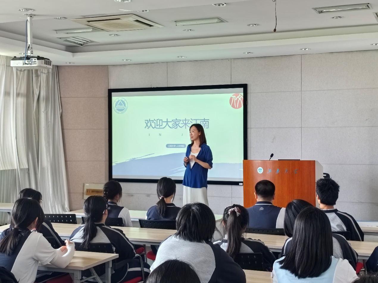 小学教育(师范)专业。陈潘琪同结合自己在小学教育(师范)专业四年的学习经历,从“景在江南”“学在江南”“乐在江南”三个方面介绍了大学生活,激发起高中毕业班学生对于大学生活的热烈向往。宣讲过后,王昕老师、陈潘琪同学还与在场高中生就高考压力纾解、高中-本科学习衔接、大学学习初心等问题进行了探讨,现场气氛热烈、和谐。