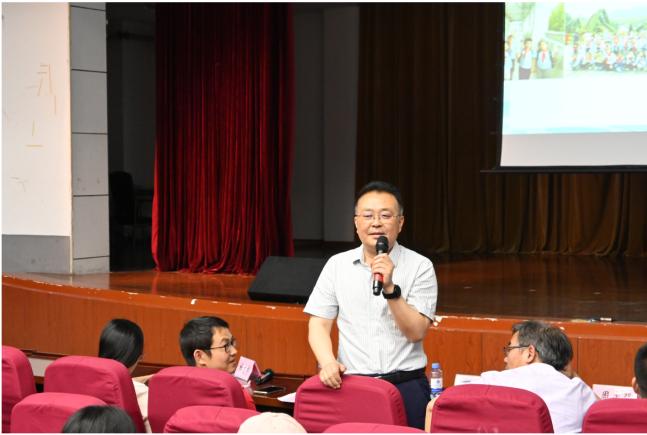 校长培训中心主任魏建新主持。结业仪式上钱逸舟副教授向圆满完成本次研修任务的学员表示祝贺,他肯定了各位学员在成长营中对前沿教育理念、教学方法和科研知识的系统学习;也对诸位新教师过去一年中在各自教育教学岗位上的实践锻炼与教学成果表示赞赏。他期待各位学员在接下来的工作中坚守教育信念,找到适合自己的发展路径。以理想信念为指引、以科学方法为手段,为成为一名卓越的人民教师时刻准备着。丁强主任回顾了一年来新吴区2023年全体新教师积极开展小组学习、学科教研活动的点点滴滴。一次次的学习与研讨见证了新教师们一年来的进步与成长。培训结束对于2023年新吴区新教师们而言并非终点,而是更高的起点。实践长真知。丁主任希望新教师们能够勇担时代使命,不断提高教育教学水平,不断进行教育教学反思,并学会在反思中寻求卓越。他殷切地希望各位新教师能够永葆教育初心,不忘育人使命,成就自己、成全学生,为新吴教育事业做出自己的贡献。