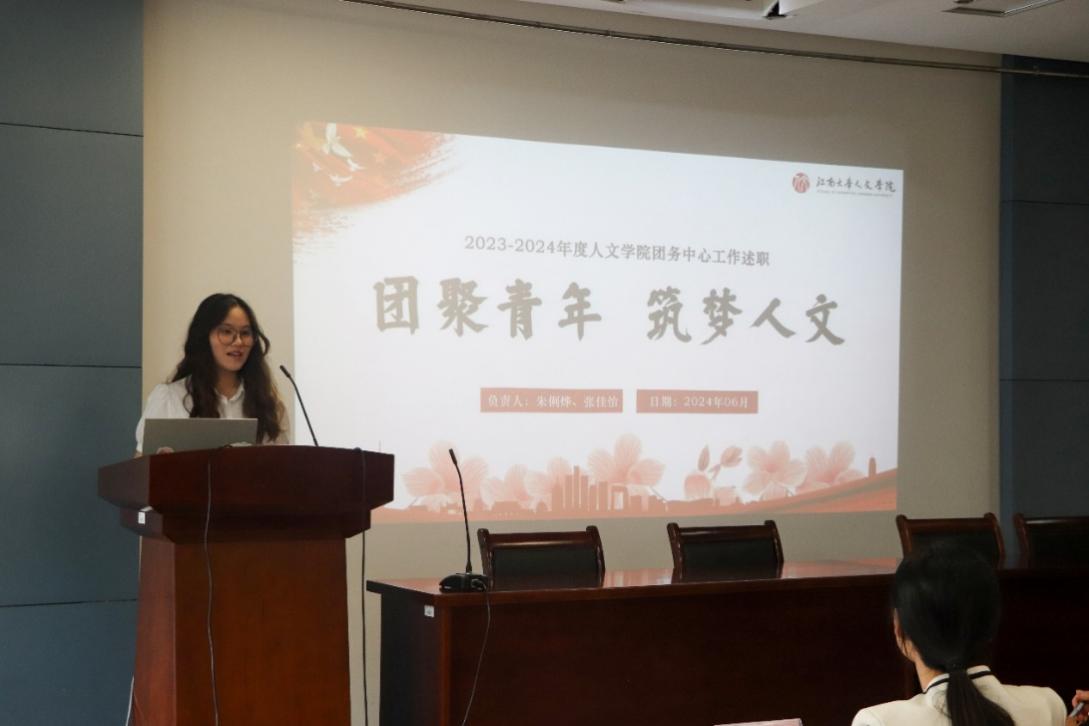 学生会、研究生会、团务中心、新媒体工作室、学习发展中心、学生事务中心、党务中心、心语心悦工作室八个学生组织负责人结合2023-2024学年工作情况展开述职。
