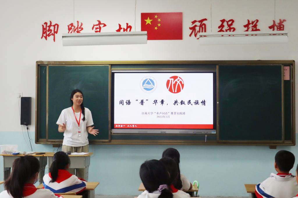 “童声同语”推普实践团跨越三千多公里,从“江南”奔赴“疆北”,用热爱和奉献助力祖国的乡村振兴事业。在“知行合一,以人育人”院训精神的指引下,人文学子积极投身社会实践,为铸牢中华民族共同体意识交上一份属于自己的青春答卷。