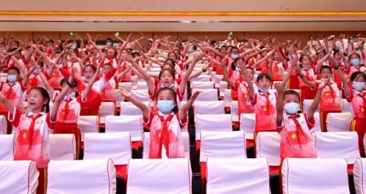 “童声同语”推普助力乡村振兴社会实践开营仪式在新疆维吾尔自治区阿克苏地区温宿县第七中学举行。温宿县委副书记、金华援温指挥部党委书记、指挥长沃建滨,水果派