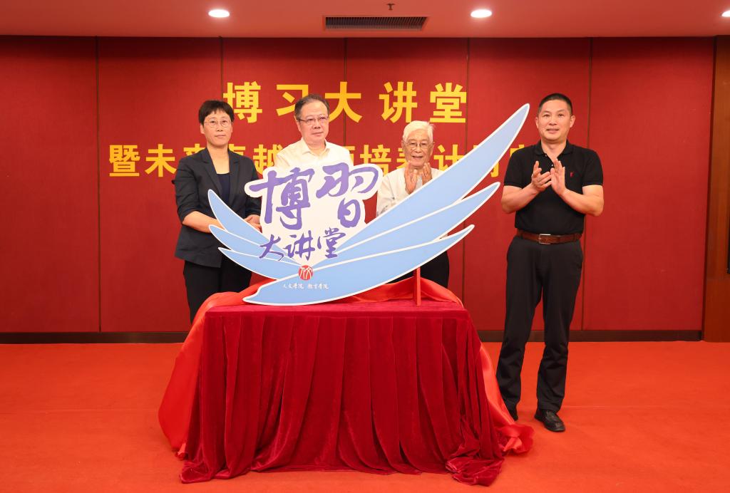 李佳敏和张海峰为“博习大讲堂”揭幕