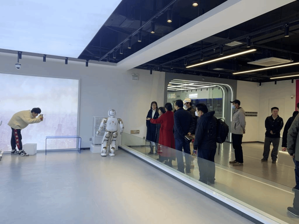 一行首先参观了经开区人工智能教育基地,作为全省唯一一个建在校内的人工智能教育基地,是集教、学、研、展、赛为一体的多功能开放式“科技空间站”。师生党员通过参观互动体验,对于紧随时代前沿,创新育人模式,办好人民满意的教育有了更深的体会。