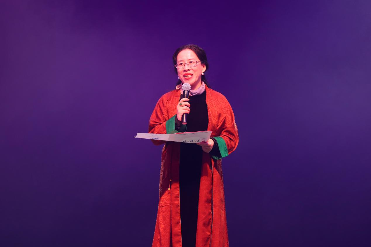 副院长、教授、硕士生导师,江苏省高校美育精品建设课程《舞蹈美育与综合素质教育》项目主持人王芳老师对本门课程的主要目标与内容设计进行了简要介绍,并对教学团队中辛勤付出的陈妍、马静、冯程程、刘俊和课程组的其他五位老师表达了感谢,对即将在舞台上完成原创舞蹈作品展示的各位同学表达了衷心的祝福。