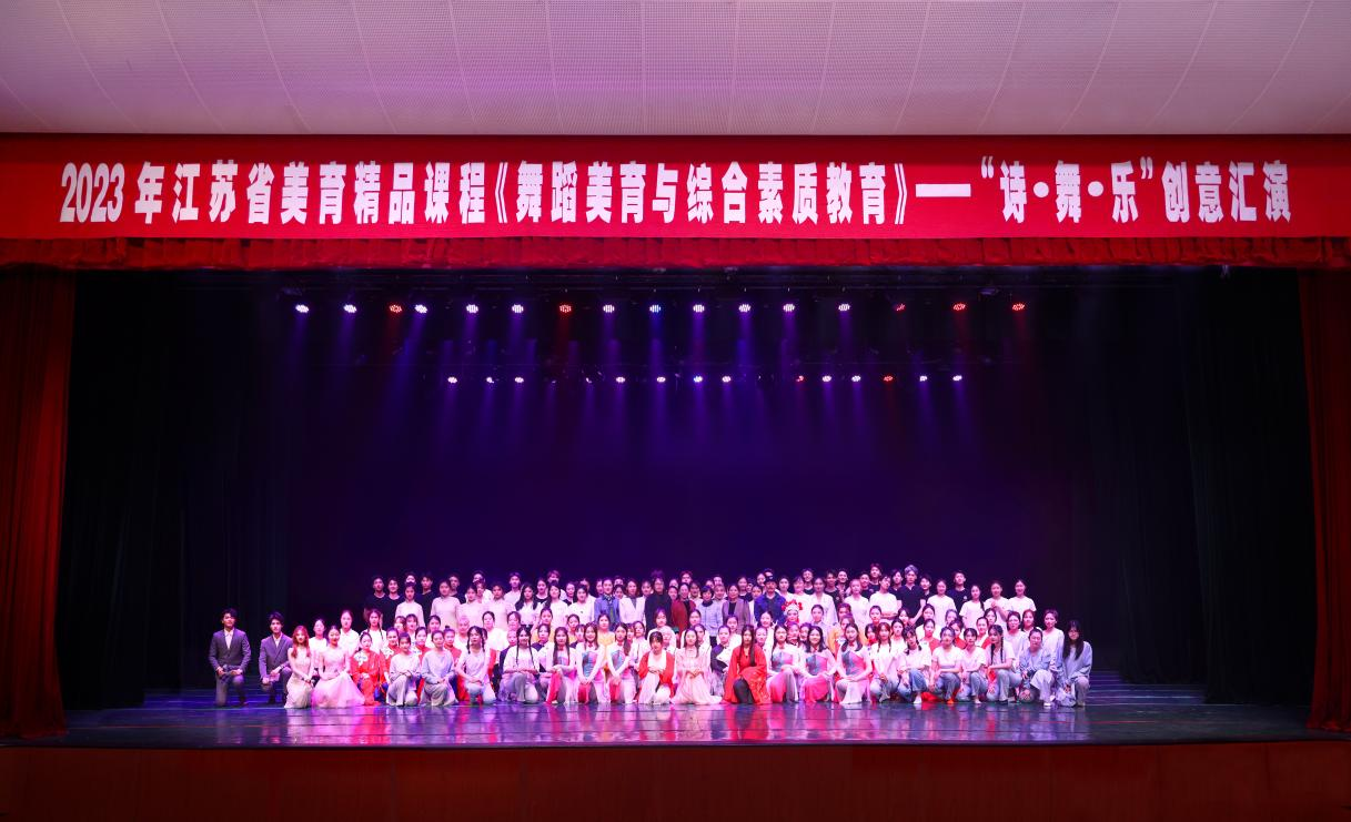 诗歌是凝练的语言,舞蹈是肢体的语言,音乐是动听的语言。本次汇演将韵味深长、内涵深刻的诗歌与情感充沛的舞蹈、富有节奏的音乐相结合,碰撞出了一场全身心的审美体验。同时,在本次“诗-舞-乐”的作品创作活动之中,同学们基于对学习、生活状态的体察,对社会现象的深度反思,在审美力、创造力、思维力等方面都实现了全面提升。器识为先,必崇德明理,五育创新并举。文艺其从,更启智润心,一生向美而行。2023年江苏省美育精品建设课程《舞蹈美育与综合素质教育》:“诗•舞•乐”创意汇演在一片热烈的掌声中圆满完成!