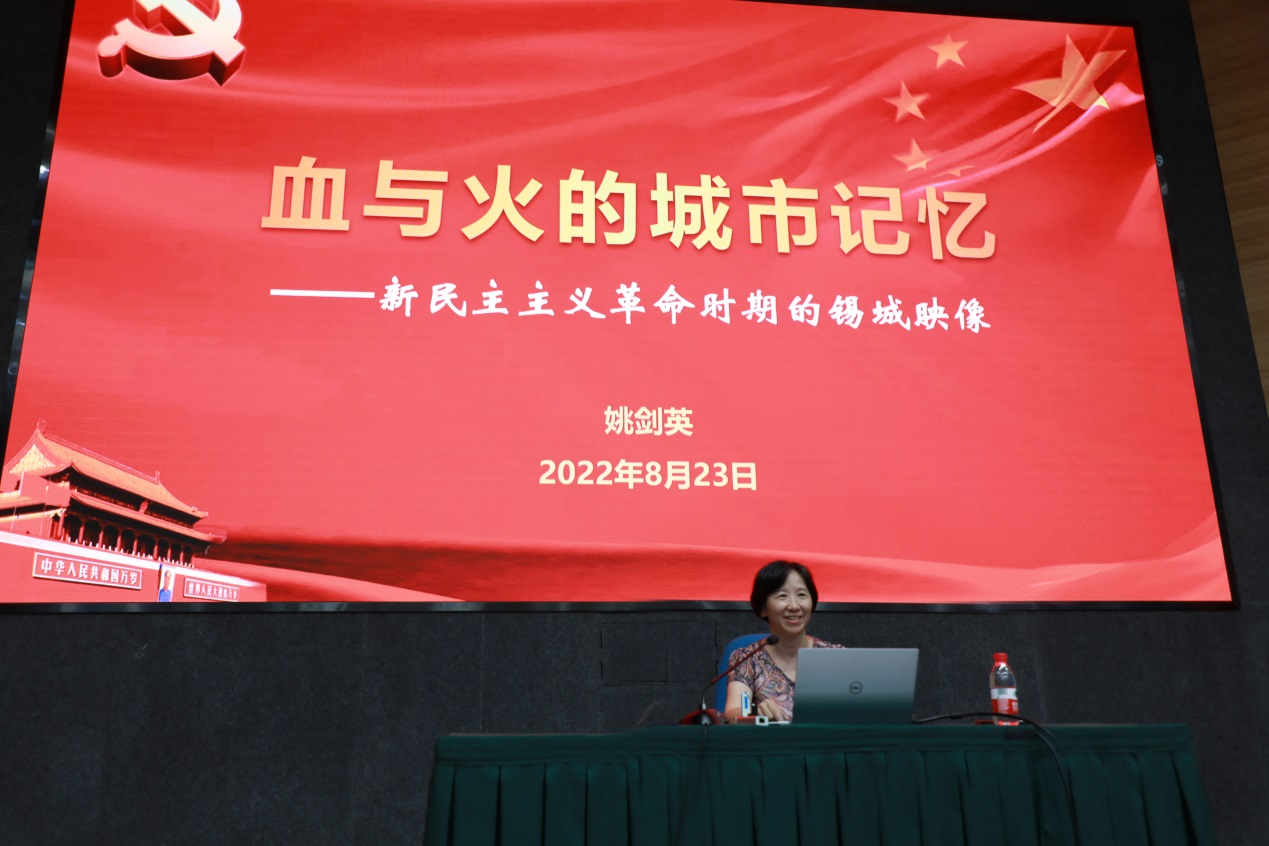 与中国电信无锡分公司举行党委中心组联合(扩大)学习会议。姚剑英作《血与火的城市记忆—无锡革命简史》专题党课。她通过呈现锡城在五四运动、中国共产党成立、五卅运动、全国农民运动等中国共产党重要历史节点的历史活动,使在场的党群干部更加了解脚下所生活的土地曾经历过的磨难,从而坚定信念、砥砺品格、凝聚力量,为无锡的城市发展建设做出贡献。中国电信无锡分公司党委中心组成员、各支部委员、青年中层管理人员、团委委员、团支部书记、县分公司党委中心组成员等以线上线下联合的方式参加了学习会。