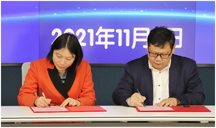 随后,在与会嘉宾与师生的见证下,陈锡初与于书娟分别代表双方共同签署了《水果派