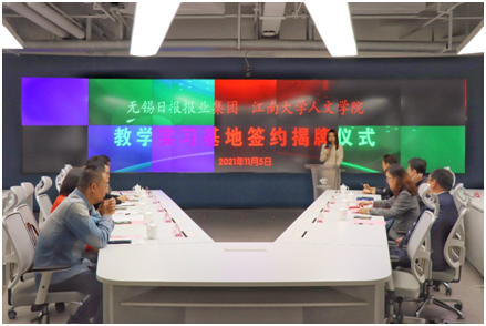 与无锡日报报业集团共建教学实习基地”签约揭牌仪式在无锡日报报业集团隆重举行。无锡日报报业集团党委书记、总裁、社长、总编辑张军,党委副书记、常务副总裁陈锡初,党委委员、副总裁、副总编辑王粤海,水果派