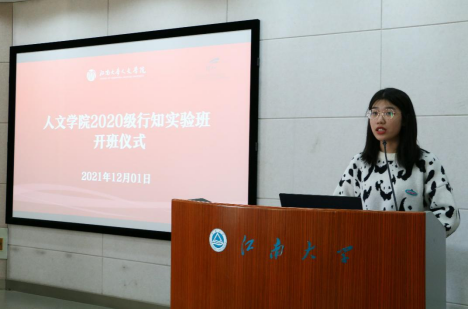 接下来,由2020级行知班学生代表余烨和行知班毕业生代表夏玉溪发言。余烨首先表达了学院为人文学子提供宝贵机会的感谢,谈到作为新时代大学生的我们,应该认真地去追逐每一件具有独特意义的事,在未来的大学生活乃至人生中,践行行知精神,成为有责任担当,有理想追求,有独立思考的人。夏玉溪分享了自己的学习历程和心得体会,鼓励同学们争做时代新青年,承一代人之担当。