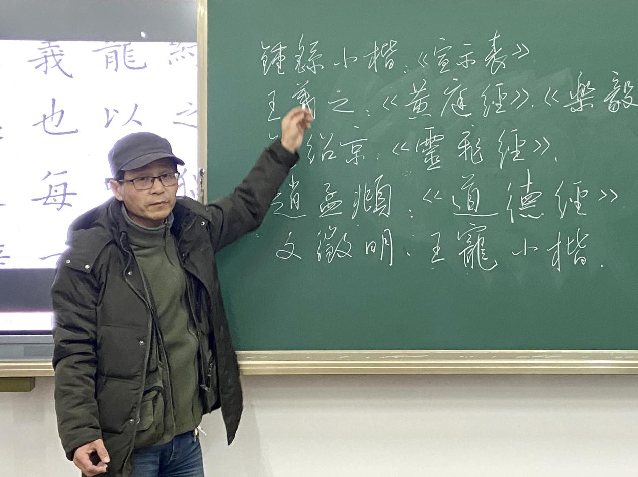 书法“小先生”培训在艺术楼书画室顺利举行。本次活动邀请到党委宣传部胡奕老师前来指导,技能中心王均霞老师主持活动。