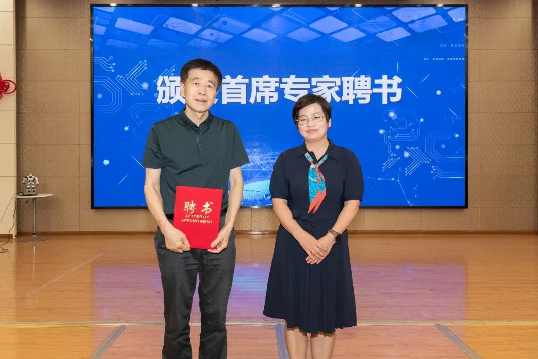 杨柳在致辞中表示,经开区作为太湖科创带上的枢纽之城,智能制造已成为区域战略发展方向,人工智能教育也将成为经开教育高质量发展的突破口。随后,田良臣与杨柳分别代表教育学院和经开区教育局为研究院成立揭牌,姚剑英宣读了研究院机构设置与专家智库名单。最后,杨柳代表经开教育局为首席专家陈明选颁发聘书。整个揭牌仪式都由智能机器人克鲁泽主持。揭牌仪式结束后,田良臣为经开区中小学校校长和骨干教师作了题为《人工智能时代的教育挑战与应对》的专题讲座。