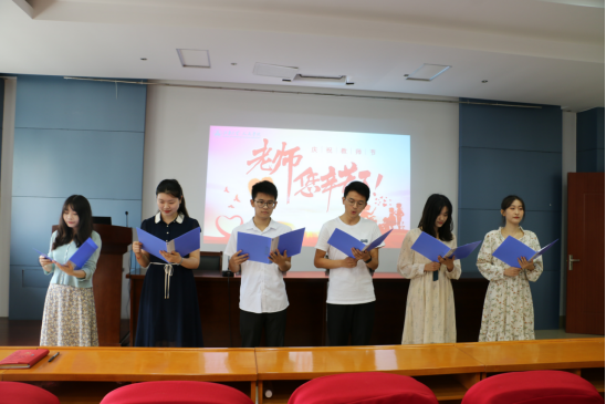 一日为师,终身为父;片言之赐,受益终生。人文学子有无数的话要对老师们说。曾磊、吴彩萍等六位同学在学院教师节大会现场深情朗诵水果派