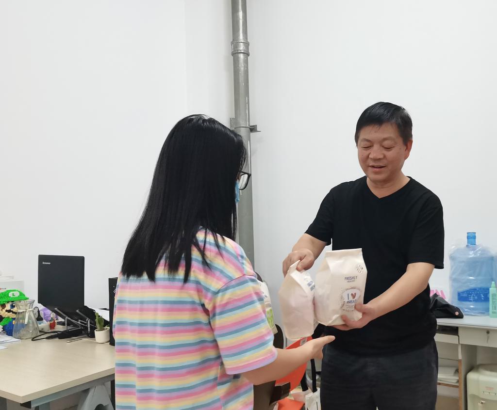 走进学生宿舍,姚剑英仔细询问同学们日常学习和生活状况,亲切地和同学们拉起了家常。一句句“在校学生活和学习可还好,职业规划是什么,备考状态如何,中秋节想不想家,跟家里面打电话、视频没有……”聊天中,充满了欢声笑语,洋溢着融融情谊,同学们也感受到人文大家庭中的温暖。学院领导老师的慰问和关怀,让同学们激动不已,大家纷纷表示,中秋佳节虽不能和家人相聚,但仍能感受到家一般的温暖,感谢领导和老师们的关心,感谢学院为他们准备的“中秋爱心礼包”。