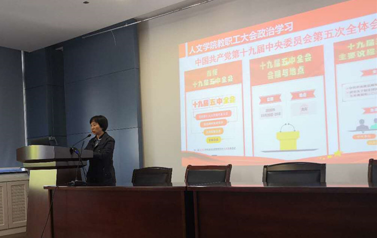在田家炳楼209会议室召开教职工大会,内容包括以党的十九届五中全会学习为主要内容的教职工政治学习、心理专题培训和近期工作部署等,并邀请校社科处处长浦徐进教授做了2021年国家社科基金项目申报动员培训。