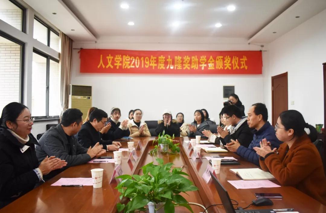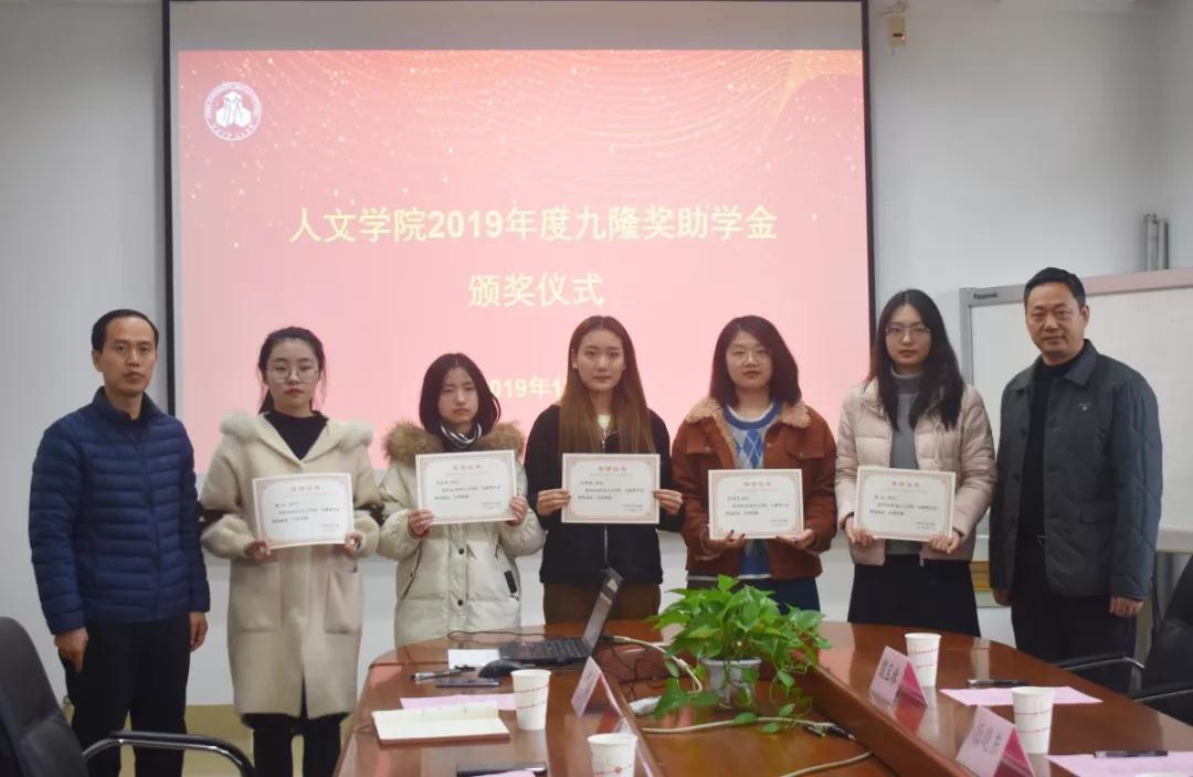 九隆奖助学金颁奖仪式在田家炳楼218举行。九隆保安服务有限公司经理杨晓东、副总经理查锡荣,办公室主任殷宝珠,水果派