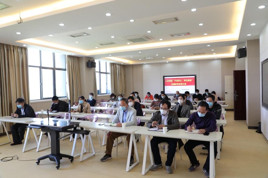 在田家炳楼517会议室召开“不忘初心、牢记使命”主题教育总结大会。学院全体党委委员、教工支部书记委员、学生支部书记参加现场会,学院其他教工党员和学生支部委员通过企业微信的形式在线参加会议。