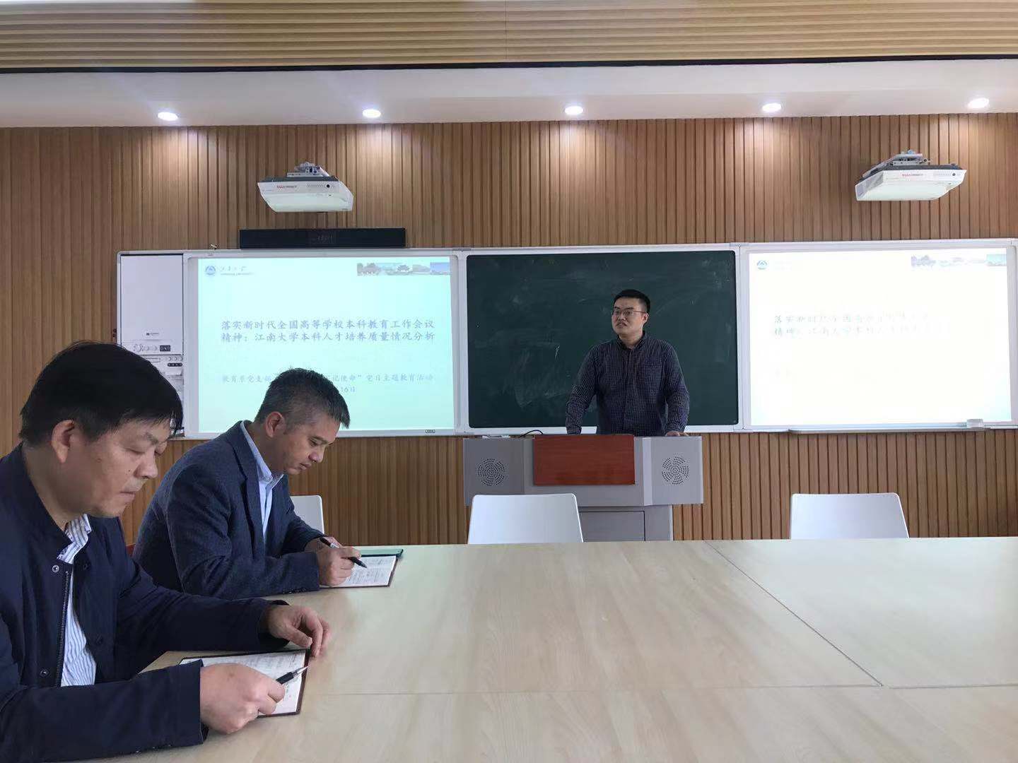 活动开始之际,蔡爱国副院长首先对本次主题教育活动给予了充分肯定,指出本次主题教育的内容非常及时,既符合新时代全国高等学校本科教育工作会议精神,又为学校、学院及系部的发展提供了重要参考。随后,屈廖健书记进行了主题宣讲。首先介绍了全国高等学校本科教育工作会议精神以及教育部关于深化本科教育教学改革全面提高人才培养质量的意见。之后结合水果派