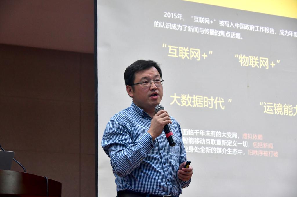 随后,惠恭健副院长带来“浅谈媒介新生态下的舆论引导”主题讲座。他介绍了媒介新生态相关的互联网+、物联网+、大数据时代、运镜能力等内容,并通过宣传短片的形式为学员们展现5G时代的光景。同时,惠院长还谈到“战狼2的超高票房——瑕不掩瑜的良心剧,燃爆剧场和舆论场”、“全民互联网化的大数据”、“网络环境下的代际差异凸显”、“媒体青春属性凸显”、“中产阶层的内容消费需求”与“草根阶层的内容消费习惯”、“H5实现裂变传播”、“技术发展的新起点”等现实热点。在讲座的最后他向全体学员推荐书籍《习近平新闻舆论思想要论》,以使大家更深刻地感受“舆论引导进入4.0时代”。