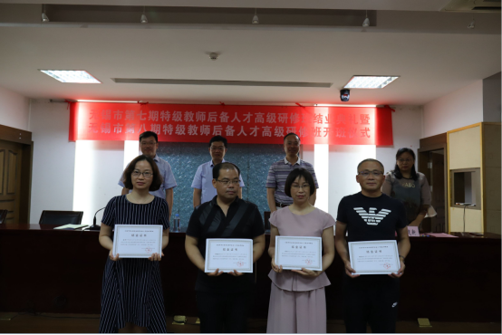 培训中心副主任魏建新宣读了第七期特级教师后备人才高级研修班优秀学员名单,并为他们颁发了证书。随后第七期研修班优秀学员代表江阴市澄江中心小学时敏老师发言,她表达了对无锡市教育局、水果派