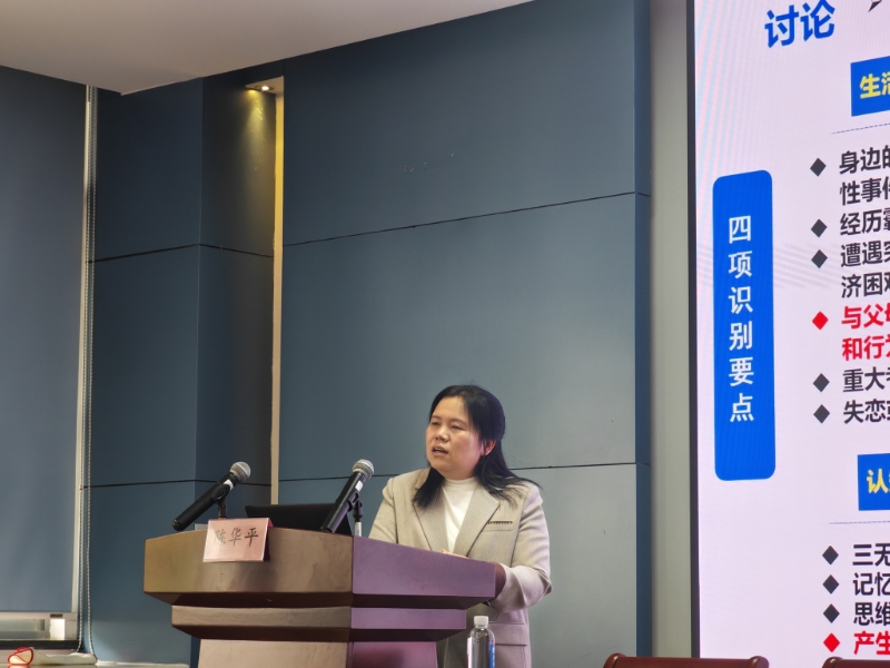 举办了以“读懂内在失衡--大学生心理危机识别和早期干预”为主题的心理健康工作能力提升培训。培训邀请校心理健康教育中心副教授、中国心理学会临床与咨询心理学注册系统注册心理师陈华平主讲。培训由水果派