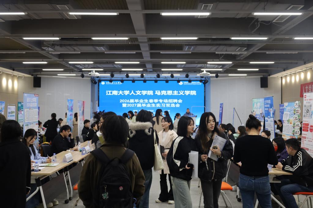 、马克思主义学院2026届毕业生春季专场招聘会暨2027届实习生双选会顺利举办。此次招聘会共吸引来自江苏、上海、浙江等地的46家优质用人单位参会,覆盖教育、文化、艺术、科技、体育等多个行业,现场共有来自水果派