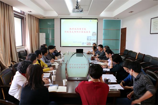 4月20日下午,人文学院行政党支部与商学院行政教辅党支部在田家炳楼207会议室,就党支部工作进行了交流、学习,商学院党委书记李佳敏、人文学院党委书记沈贵鹏参加活动并分别致辞。双方就如何结合岗位特点、推进支部“两学一做”学习教育常态化和制度化、提升党员先进性和管理能力,结合贯彻全国高校思想政治工作会议精神,发挥管理育人和服务育人的针对性和实效性,支部特色工作等方面展开了交流,并就各自工作方法等内容进行了研讨。大家普遍认为:作为学院行政教辅支部的党员同志承担着服务于学院教学、科研等主体工作的职能,要坚持和加强“两学一做”学习教育,强化服务意识、大局意识和服务能力,在奉献和服务中体现和发挥党员的先进性,切实践行服务育人、管理育人的宗旨;党支部要把民主生活会等理论学习教育活动与实践性教育活动有机结合起来,提升党支部的凝聚力和先进性。