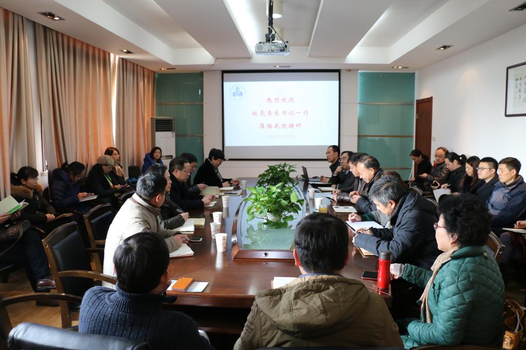 12月12日下午,校党委书记朱庆葆携社科处人事处和研究生院等职能部门负责人一行到人文学院调研。人文学院领导班子成员、各部门主任、教工党支部书记以及部分教师代表等二十余人参加会议。会议由人文学院党委书记沈贵鹏主持。