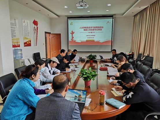 2021年4月13日下午,人文学院党史学习教育推进会暨教工党支部书记培训在院党员活动室召开。学院党委书记姚剑英、党委副书记李萍,以及学院师生党支部书记、支委参加了会议。会议主要就学院党史学习教育重点工作部署以及基层党支部考核等内容进行了研讨。