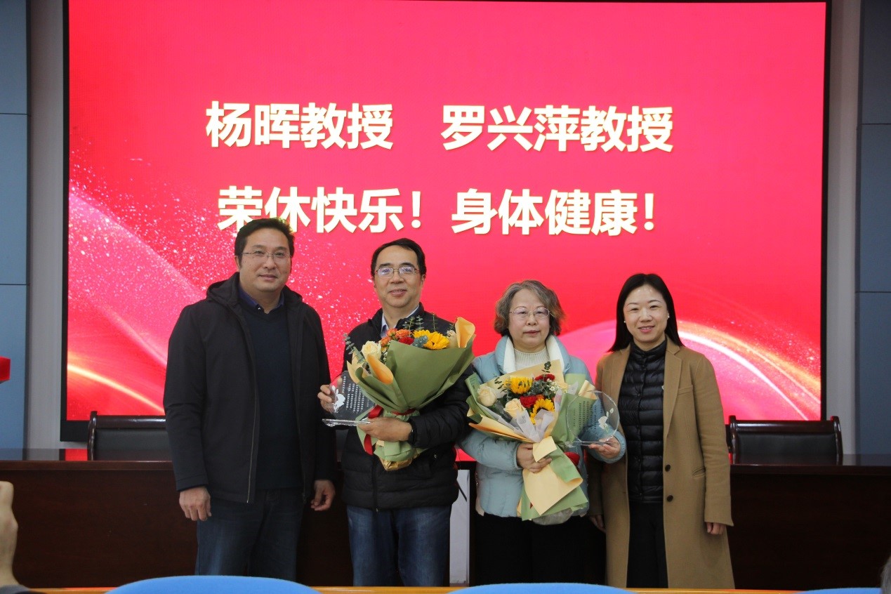 会议举行了教师荣休仪式。会上介绍了今年下半年荣休的中文系教授杨晖和罗兴萍的基本情况,对他们为学校学院和学生成长所做的奉献表示感谢,并致以敬意和祝福。杨晖罗兴萍伉俪发表荣休感言,他们分享了自己多年来在江南大学的收获、心得和感悟,话语中充满了对学校的眷恋之情和对教育事业的执着与深情,并对年轻教师寄予了希望和表达了祝福。青年教师刘雨晴、梁博宇为二位荣休教师献花。学院党委书记王晖、院长伍红林颁发纪念品并合影留念。此活动是人文学院开展“师德宣传教育周”活动之一,通过隆重又简朴的仪式活动,营造尊师重教的浓厚氛围,激励教师勇担为党育人、为国育才的崇高使命。