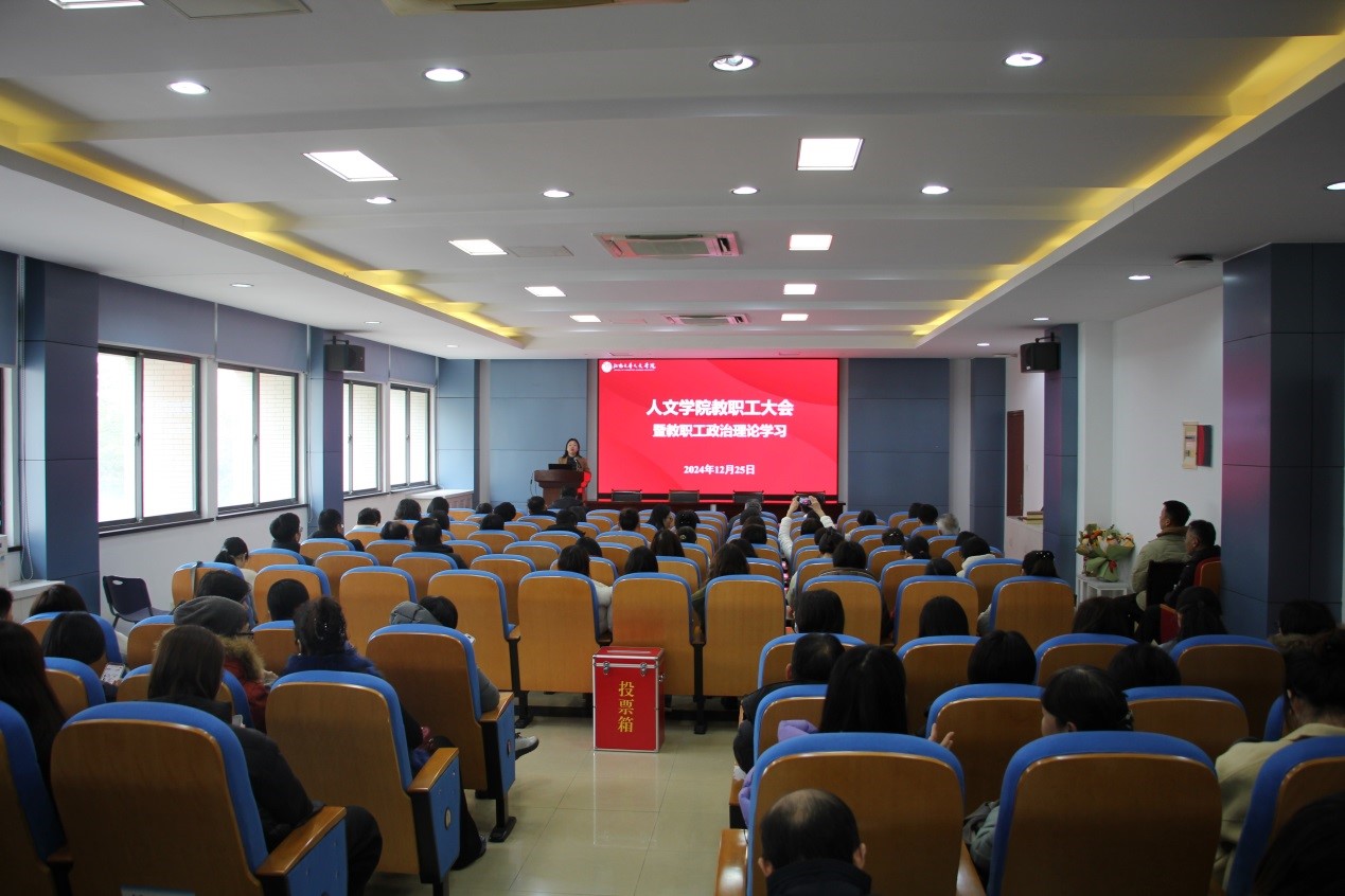 12月25日下午,人文学院在田家炳楼209会议室召开全院教职工大会,院领导班子及全院教职工参加会议。会议由人文学院党委书记王晖主持。