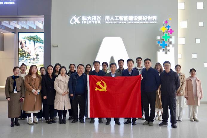 为深入学习贯彻党的二十大精神,加快推进教育现代化,助力教育强国战略实施,2025年3月28日至29日,省高校党建工作样板支部、校第二批“双带头人”党支部书记工作室人文学院教技系教工党支部携学生代表一行赴合肥科大讯飞总部及渡江战役纪念馆等地开展“赓续红色基因、智联未来教育”主题党日活动。科大讯飞教育技术研究院院长刘邦奇,副院长王亚飞,科大讯飞教育运作支持副总经理陈雨等参加活动交流。