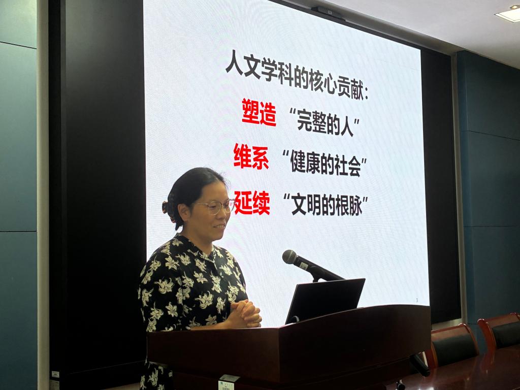 作为学院师德宣传教育周系列活动,会议特邀学校弘扬教育家精神宣讲团成员食品学院匡华教授作“我的育人故事”师德主题报告。匡华指出,人文学科对文明延续、社会维系、人格完善都有着核心贡献,关乎民族精神基因的塑造。她用平实又幽默的话语,讲述了在学生培养、个人学术发展中的点滴故事。她认为教师要以身作则,身先士卒,对学生要换位思考,善待每一个不同的学生;青年教师要团结好团队同辈,以合作共赢的方式获得成长;每一个科研人要寻找有独特性的创新标签,并大胆设定成长计划。匡教授妙语连珠、旁征博引,用精彩的案例、犀利的语言,给在场的教职工以深刻的启发和教育。