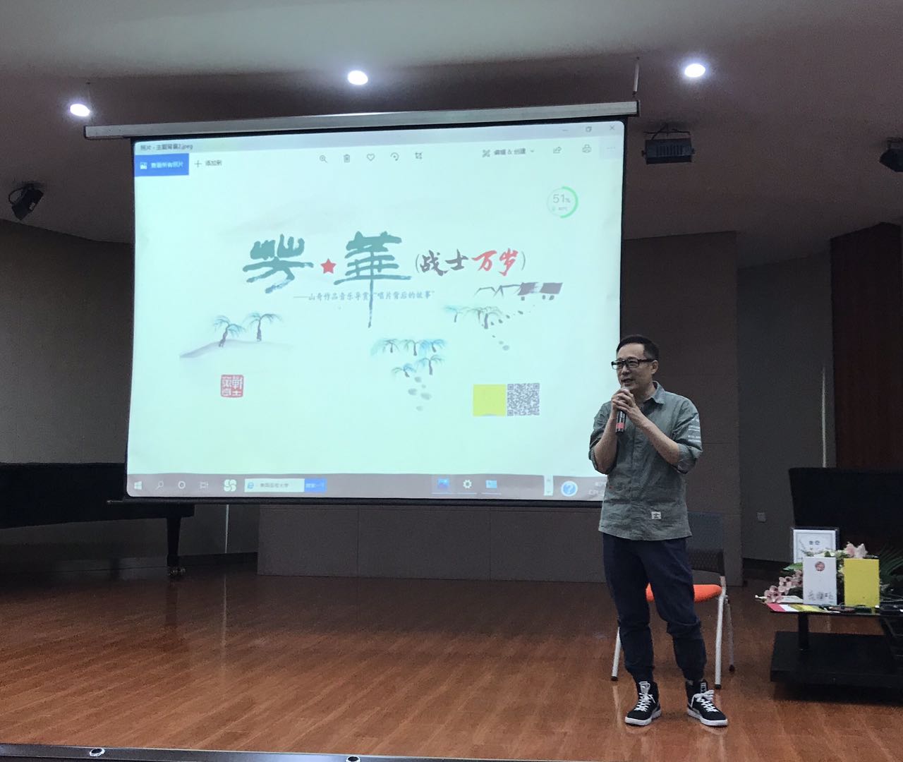 导赏会上,山奇详细地向大家介绍了《芳·华》的创造历程,他通过相关通讯报道、战士的日记、家书等方式收集材料,汇编成12首诗,即为《芳·华》,诠释了对战士们的敬畏之情。作品把每一位在场的老师和同学带到了当年前线作战的残酷环境,感受战士们用血肉之躯铸造忠魂的精神气概。山奇的作品中具有英雄主义色彩,同时又有着对亲人和逝去战士柔情似水的思念,以及捍卫祖国尊严的坚强信念,值得大家去聆听欣赏。