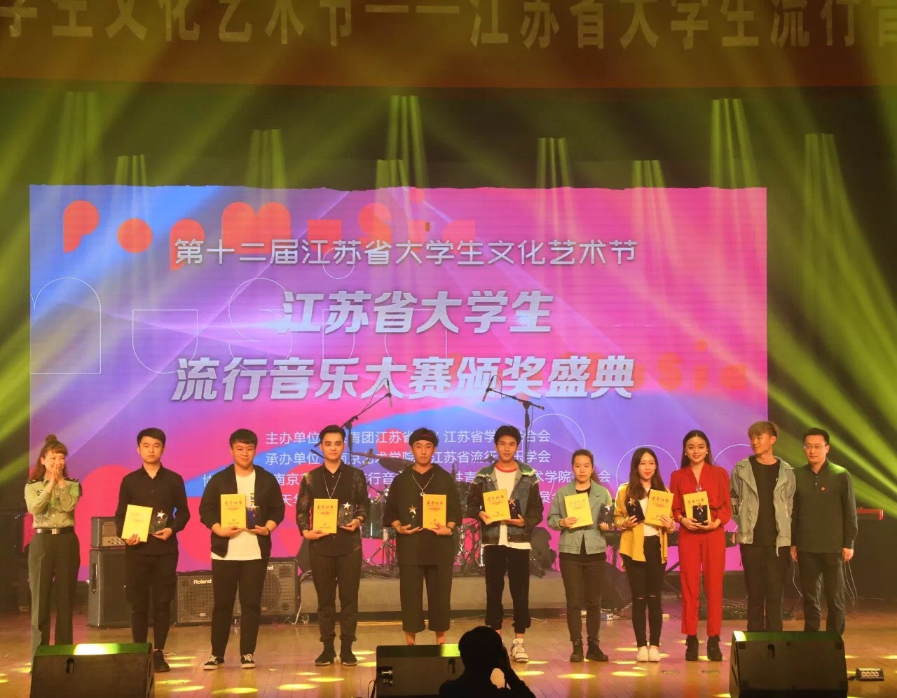 首届江苏省流行音乐大赛(高校赛)颁奖盛典暨江苏省流行音乐高校联盟揭牌仪式于5月20日19:30在南京艺术学院举行,本次大赛由共青团江苏省委、江苏省大学生联合会主办,江苏省流行音乐学会、南京艺术学院承办。江苏省流行音乐学会副主席、江南大学人文学院音乐系教师钱琳,校团委老师腾飞出席了本次颁奖盛典。