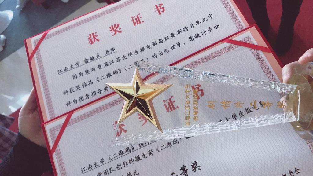 在此次首届江苏省微电影超级赛中,俞敏武老师凭借着对各团队的专业指导获得优秀指导老师称号,江南大学凭借斐然的成绩获得最佳组织奖的荣誉称号。