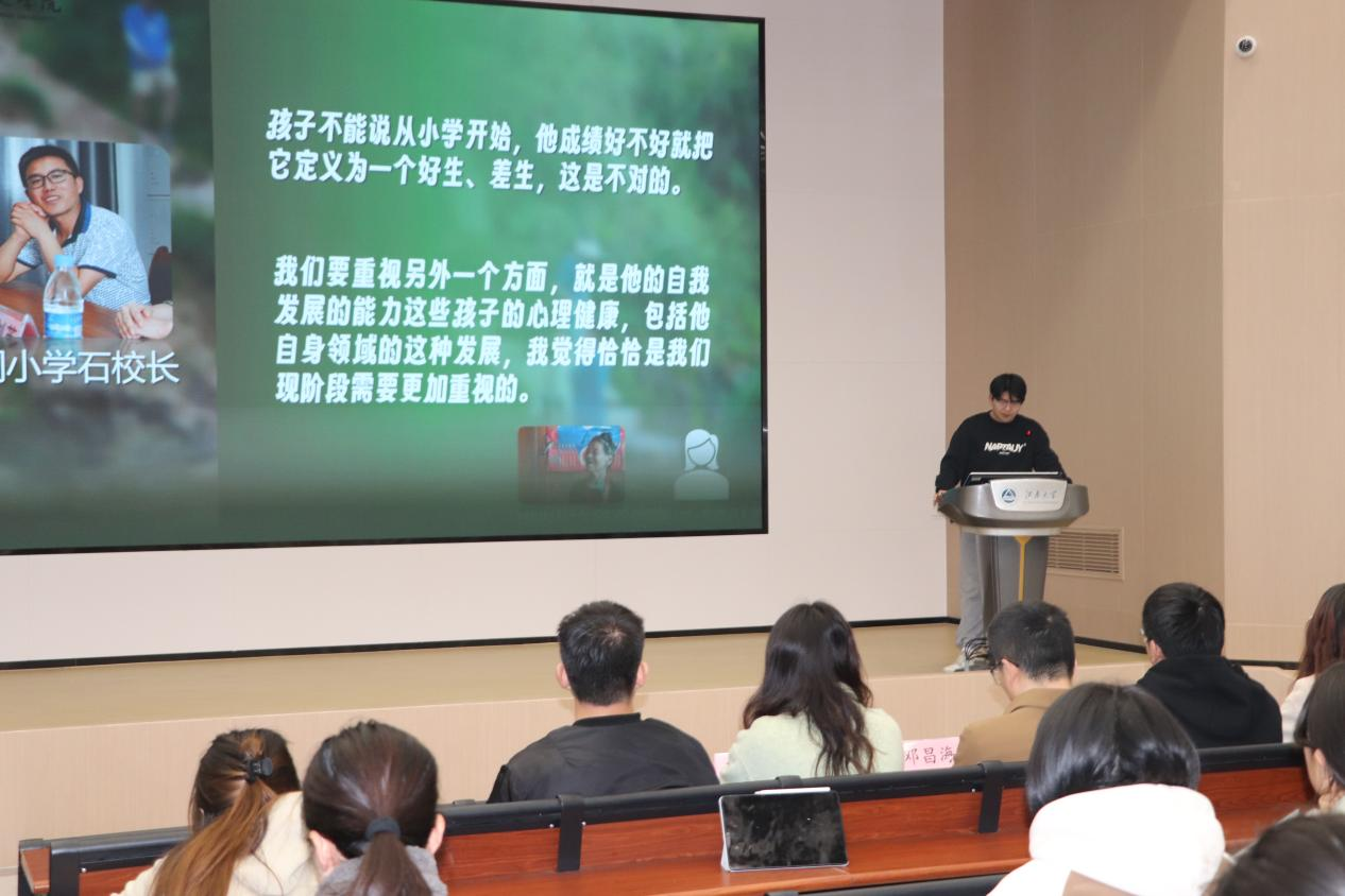 宣讲会上,2023年心手相牵推普实践团队长仝阔、童声同语推普实践团优秀队员李羊首先和大家讲述了自己的支教故事。他们围绕团队发展、实践内容、支教经历等方面展开介绍,分享个人心得体会,鼓励大家踊跃报名,让持续多年的接力志愿服务薪火相传。