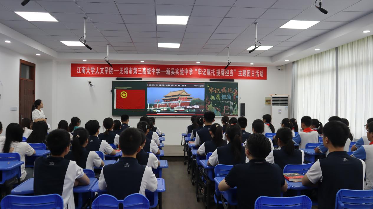 为深入学习习近平总书记五四重要寄语精神,近日,人文学院青年马克思主义者培养工程第六届培训班学员赴无锡市第三高级中学参加“牢记嘱托、挺膺担当”主题团日活动,与无锡市第三高级中学、新吴实验中学的60余名团员代表们共同学习习近平总书记五四青年节对全国广大青年寄语精神,畅谈《习近平与大学生朋友们》读书心得,分享成长经历和感悟。