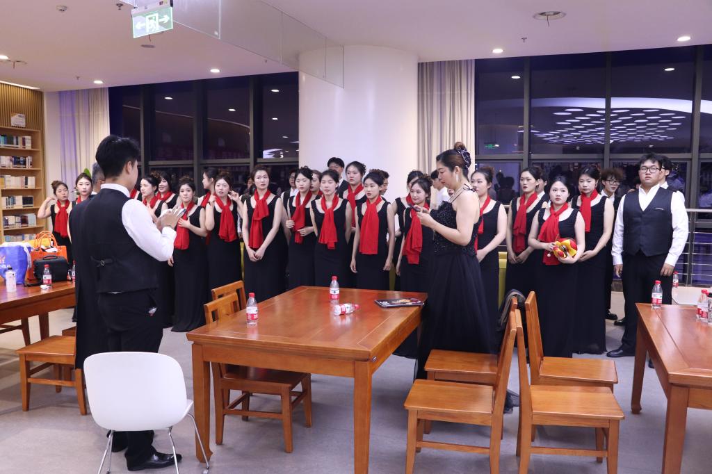 6月14日,江南大学人文学院党委书记姚剑英、副院长王芳亲自带队,前往襄阳参加现场展演。到达襄阳后,为了呈现最佳的舞台效果,合唱团成员们统筹规划,采取“分组+集中”的形式进行排练,以精益求精的态度,不断打磨作品,追求歌声的和谐统一与曲意的极致表达。