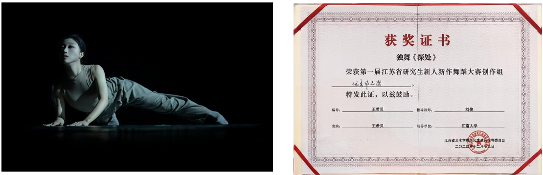 江苏省研究生新人新作舞蹈大赛代表了我省高校舞蹈硕士编创技能和舞台表演能力的最高水平。江南大学研究生院与研究生工作部高度重视,为学院参赛提供多方面的支持。本次参赛经过主办单位层层筛选,三位研究生以视频形式顺利通过初赛。最终由舞蹈系冯程程老师带队赴南京艺术学院参加省内总决赛。