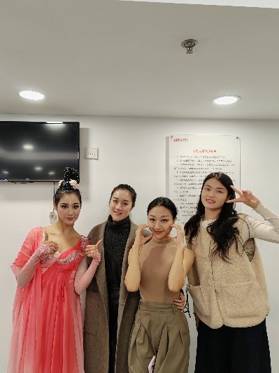 人文学院舞蹈系冯程程老师(左2)与三位选手在决赛现场